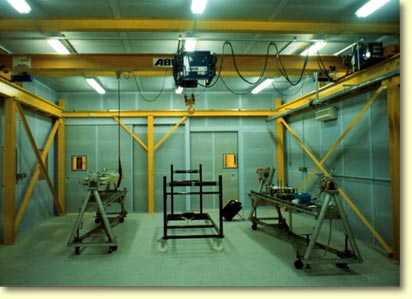 An example of one of our enclosures supplied and fitted complete with all electric and pneumatic services, full powered crane to suit clients specific requirements. The enclosure is fully air conditioned to ensure a comfortable environment for the personnel working inside. | |