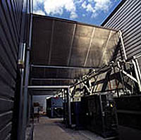 Many acoustic enclosures are poorly designed and suffer from problems of visual access, manual access, and maintenance problems. Many provide no ventilation or means of allowing product and services in or out, or do so by totally short-circuiting the enclosure's inherent acoustic performance. Bur-low's acoustic enclosures are designed in consultation with end users wherever possible and, where required, always provide silenced ventilation and a silenced means of product through-put. Noise barriers can be large and cumbersome when inappropriately specified and designed but are ideal for situations where the source must be totally open, such as very sensitive chillers, loading bays, etc. | |